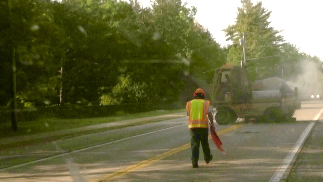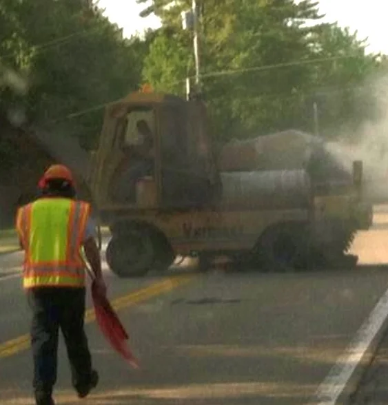“They're making saw cuts now, down through the road. They've got a big carbide tip blade, they cut out the sections that have got to be dug out," Mike told Schroon Laker today.