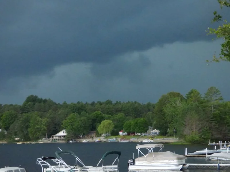 "This is the thunder storm coming out of the west over Terra Alta and the marina. It had a lot of thunder and lightning and pea sized hail. It certainly looked ominous and all boaters and beach goers cleared the lake pronto".