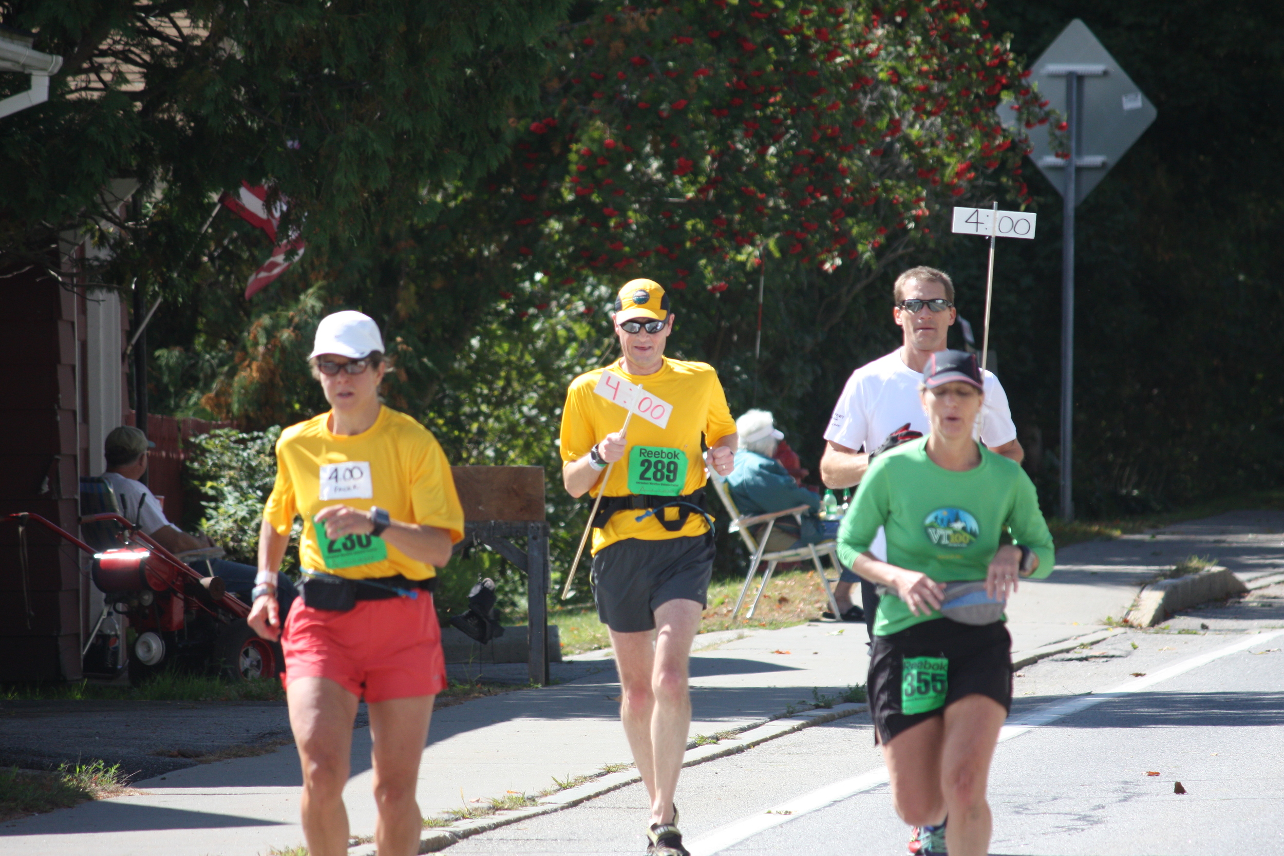 /The 4 Hour Pace Bears with runners during the 2013 Marathon. Schroon Laker Collection.