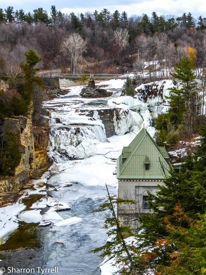 This [picture of Ausable Chasm, made by the talented Sharron Hozley Tyrrell, captures then raw beauty of the Adirondacks. It captures a hint of spring, with the melting snow and ice, against a picture perfect blue sky. Thanksyou Sharron your reminding us about the beauty of this place we are part of.