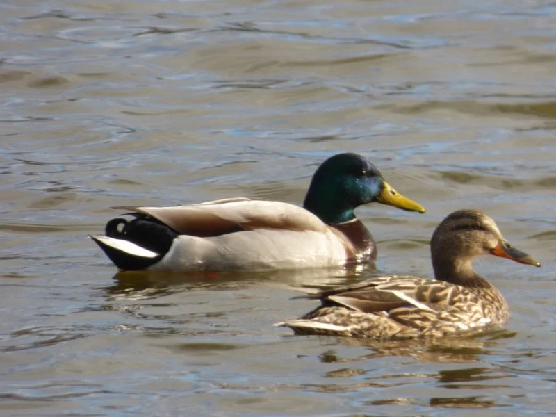 "This pair of mallard ducks welcomed back this weekend. The male is one of the most easily recognized ducks by its colorful iridescent green-blue head. The female is a drab mottled brown color. The mallards are very vocal and call to other birds to come join them. The female’s common name is Susie quacker and her voice is much louder and higher in pitch. Enjoy.