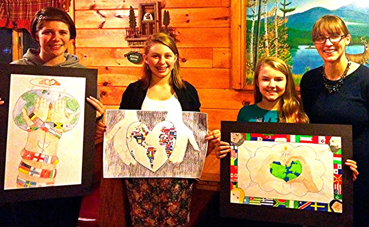 /A huge congrats to the Lions Club of Schroon 2015 Peace Poster Winners. From left to right are Grace Higgins, runner-up, Lidia Vickery, club winner and Regional Winner, Lillian Slyman. Art teacher Brie Livingston was the inspiration for the project and made it happen!. Well, Done!!!