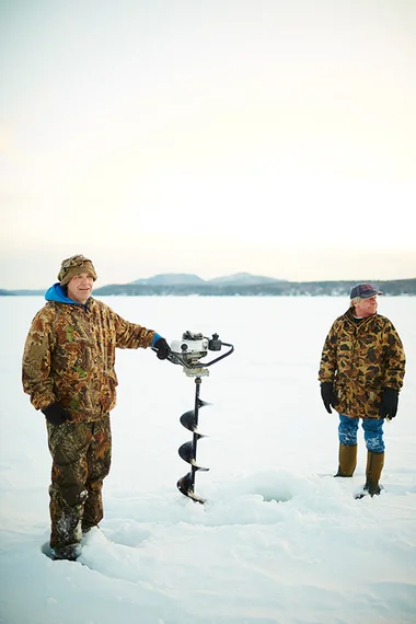 Having no experience at all with the ice fishing sport, I had my doubts as to whether the ice would be safe. Those doubts quickly subsided after seeing the amount of SUVs, cars, and four wheelers that seemed to be safely gliding along the lake. It was dusk on a Friday evening and the fishermen were already out there drilling and setting up their home bases for the weekend.