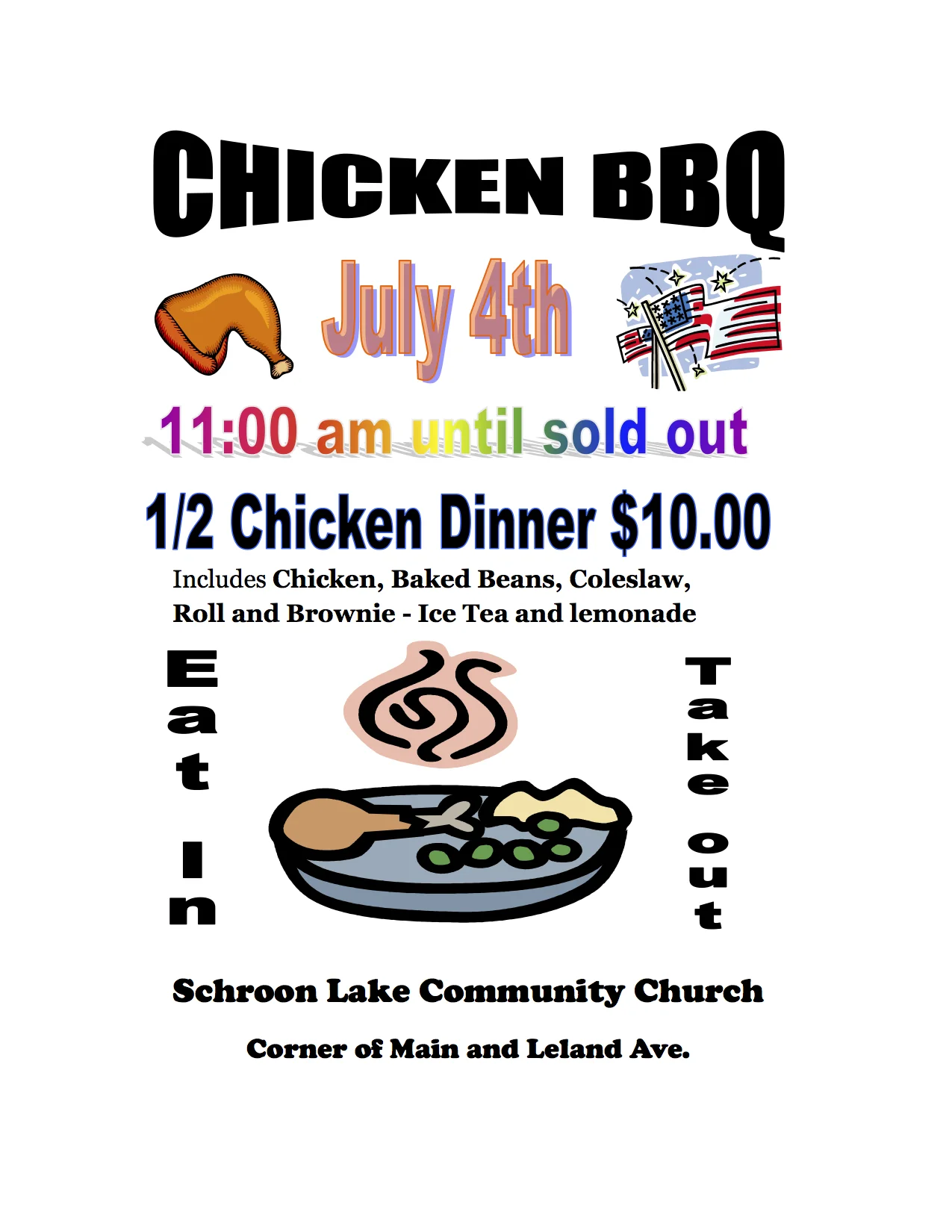 /With the closing of Mr. P's Smokehouse, we are predicting the delicious barbecue chicken -- from the master chefs at Schroon's Community Church -- will be sold out earlier than usual this coming July 4th. So consider this an early warning: mark your calendars, our taste buds will be glad you did!