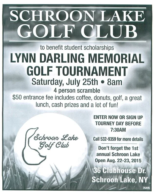 /If you have never played the Schroon Lake Golf course you are depriving yourself of a great experience. And now you have a terrific excuse to get out there. This Saturday, July 25th, is the Lynn Darling Memorial Golf Tournament. All the details are on the poster.