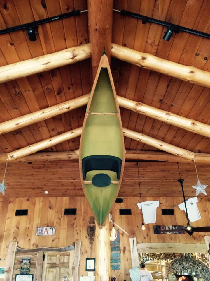 "We are extremely proud to display one of the finest vessels on the planet at Sticks & Stones. Come on in and check it out! The great folks at Hornbeck Boats have a 12' masterpiece hanging from the cedar rafters at right now. Or better yet head over to nearby Olmstedville where these magnificent boats are created!