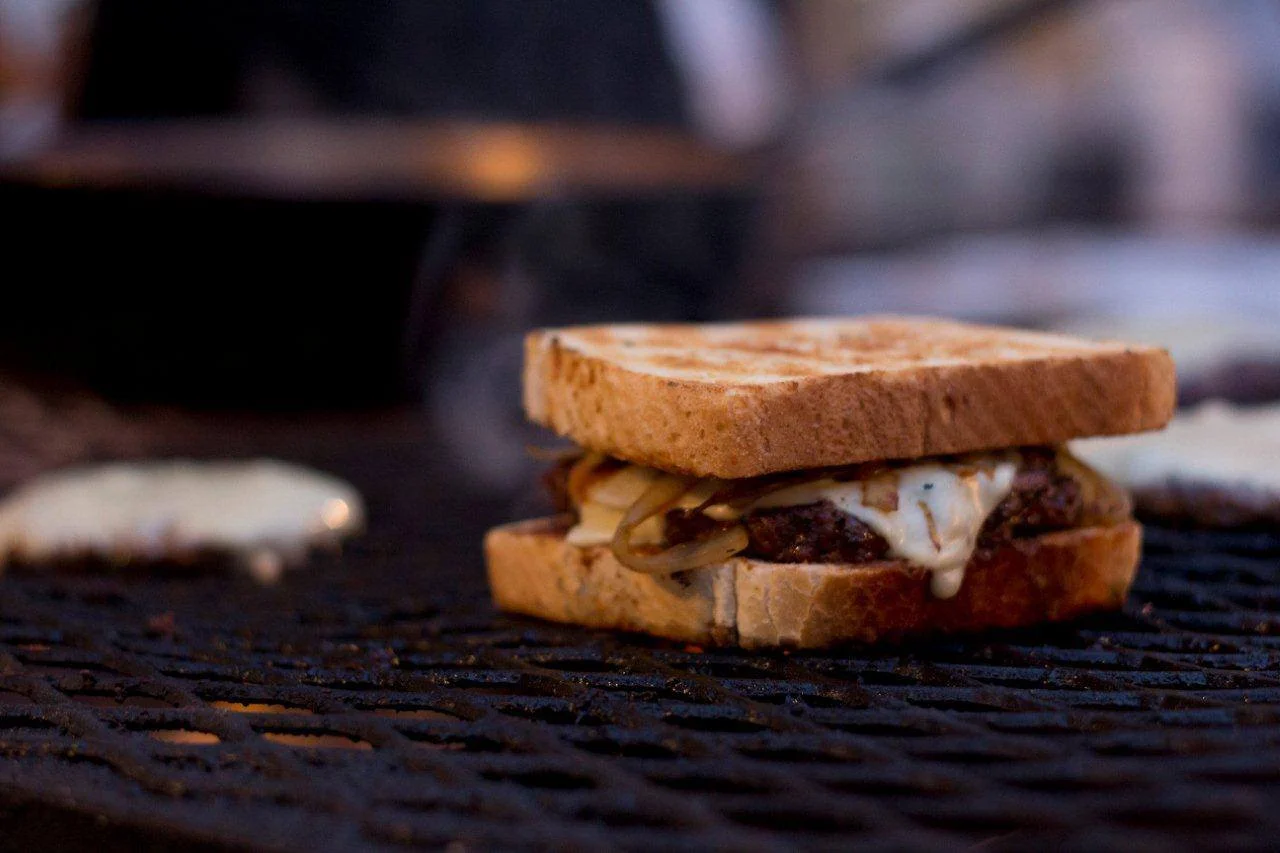 “It's two slices of grilled Texas Toast, 1/3 pound beef patty with Cajun BBQ sauce, Caramelized Onions, and Pepper Jack cheese! All for only $5 (or you can get a Meal Deal for $7, which includes chips and a drink)
