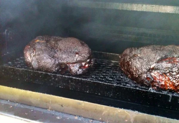 Pork Butts in the awesomely huge mr. p's smoker. For a small price this and the restaurant could be yours.