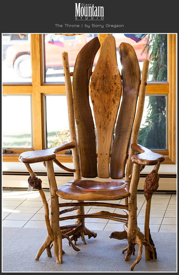 The Throne by Barry Gregson. Experience it at Giant Mountain Studio . This is just one of the great rustic furniture pieces on display.