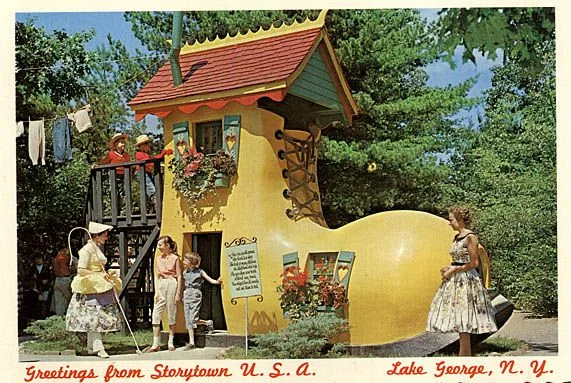 In 1954, the Woods purchased five acres of swampland on the east side of Route 9 between Lake George and Glens Falls for $75,000. It was here the fabled Storytown amusement park was built-- opening a year before Disneyworld.