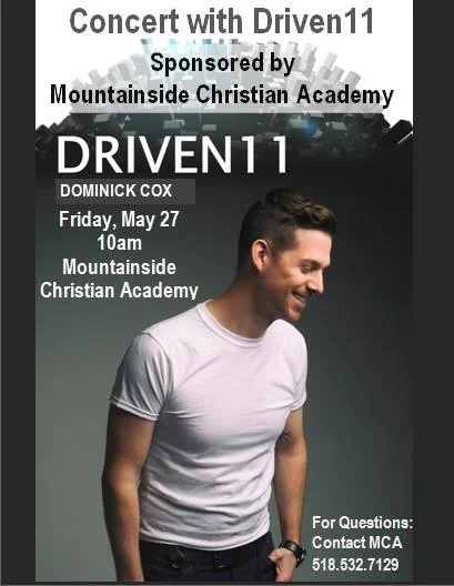 Dominick Cox, a solo artist and speaker under the name DRIVEN 11 comes to MCA this Friday. Dominick travels across the US spreading his testimony and stories to provide hope, healing and new energy to those he meets. So save the date: Friday May 27, at 10;30 am!