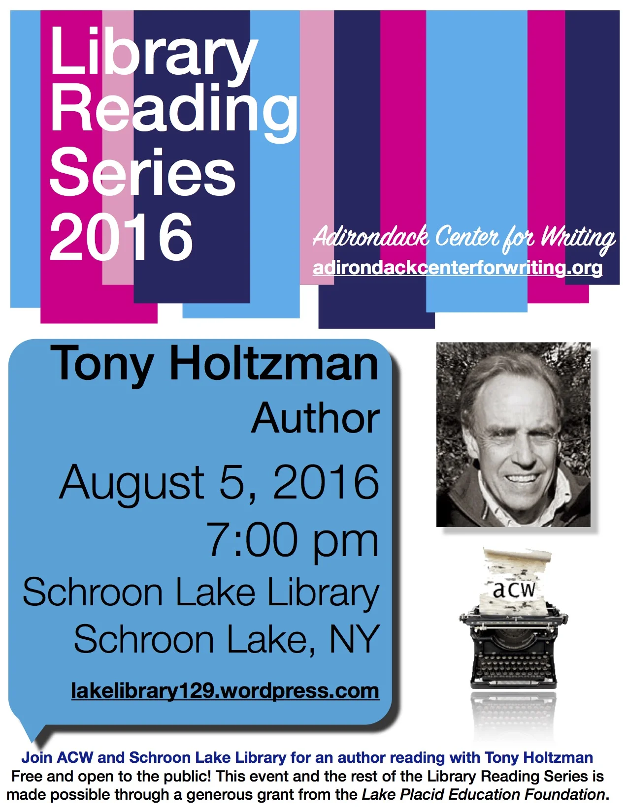 Meet Adirondack Author Tony Holtzman Friday Night!
