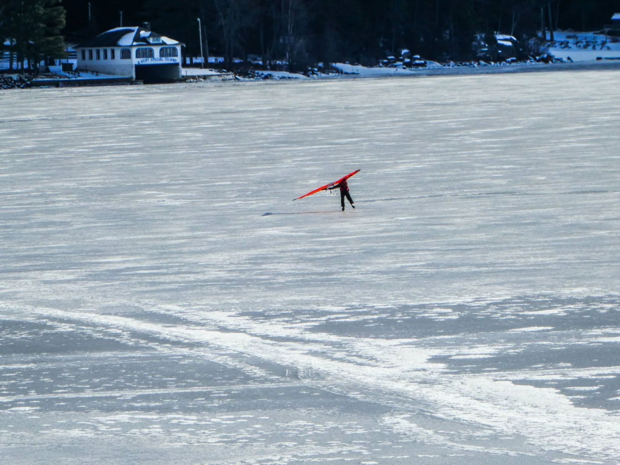 Sharron Hozley Tyrrell captured this amazing scene on Friday at the north end of the lake of a Kite ice skater. This brave dare devil is a participant in a sport also known as para-skating or para ice skating.