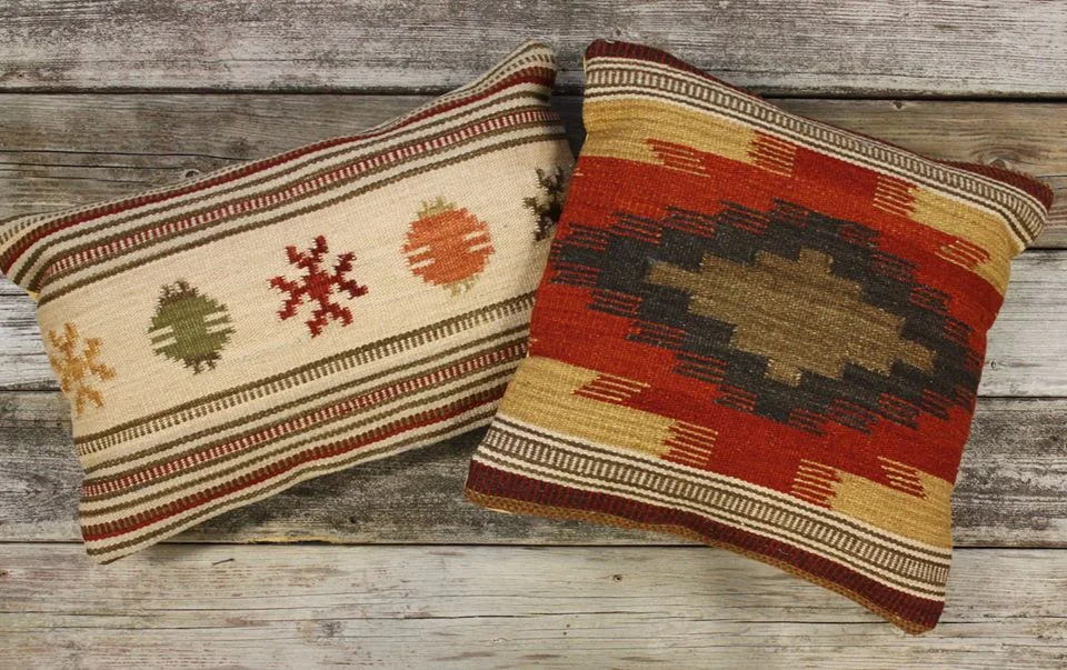"Check out our great Kilim Pillows in rich fall tones. Or cozy up in our newly reupholstered Antique Harden Mission Armchair and scan thru one of our many "Comfort Food" cookbooks. Or how about playing tic-tac-toe or starting a vintage "Outdoor Life" puzzle? Maybe you just need to curl up in one of our new British wool plaid blankets and test out our great new Barnwood Bed.”