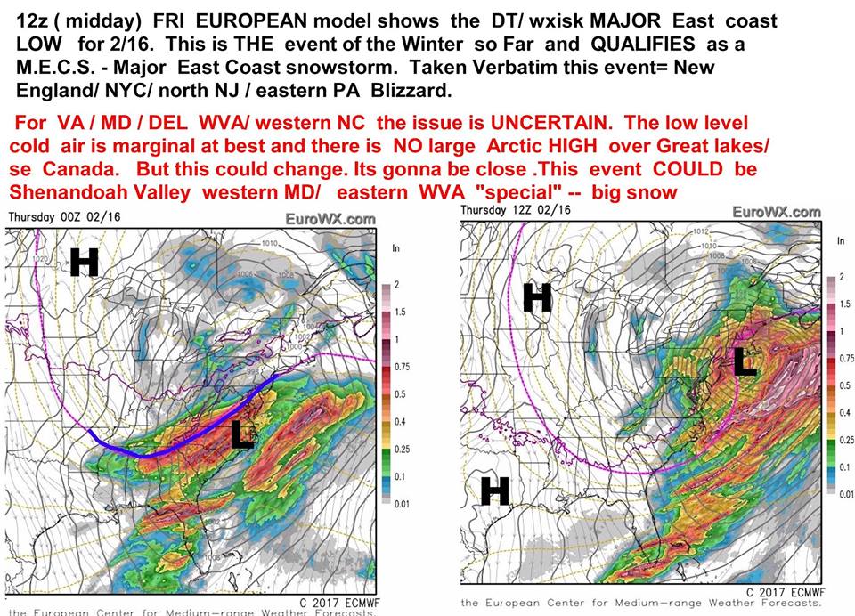 "Winter Storm Watches have been upgraded to Warnings now. Looks like 12", to as much as 18" is possible according to latest guidance. Those amounts carry on south of Albany as well. On a historical note this is the first Winter Storm Warning for Northern NY-Northern New England in about 3 winters, except for a couple isolated areas. Very unusual".