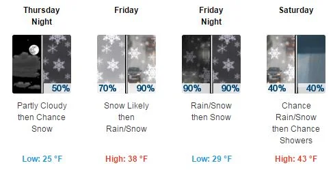 So here in Schroon we will be seeing the white stuff start to fall Thursday night into Friday and through to Sunday.
