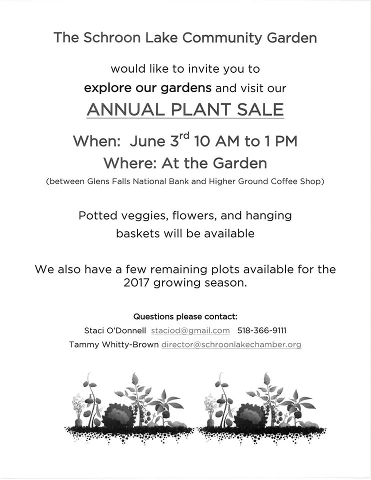 /A huge hat tip to the folks that keep on making Schroon great. The Schroon Lake Community Garden is in tip top shape, thanks to an enthusiastic group of volunteers. There's a plant sale this weekend and a few plots left. More, from Tammy Whitty-Brown, the executive director of the Schroon Lake Chamber of Commerce: