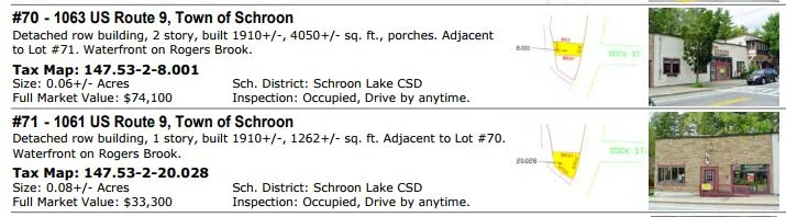 /Two prime store front properties on Schroon’s Main Street will be auctioned off at the Essex Country Tax Foreclosure Auction. The auction, which features nine properties in Schroon -- will be held at 11am on August 30 at the Best Western Hotel in Ticonderoga.