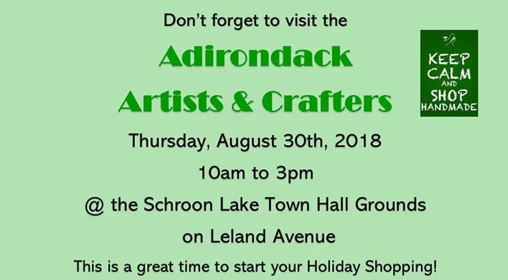 /There's fresh produce, maple syrup, honey, baskets, balsam filled pillows, bird houses and more! Thursday is the second last week of the annual summer Adirondack Artists and Crafts Market. On the lawn of the Schroon Lake Town Hall from 10 am. to 3 pm.