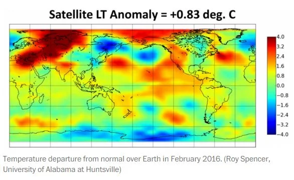 From The Wash-Po:: The record warm satellite reading in February follows news that meteorological winter (encompassing December, January and February) was among the warmest on record in many parts of the northern contiguous United States and Alaska. The Weather Channel reported the following cities had their warmest and second-warmest winters on record: