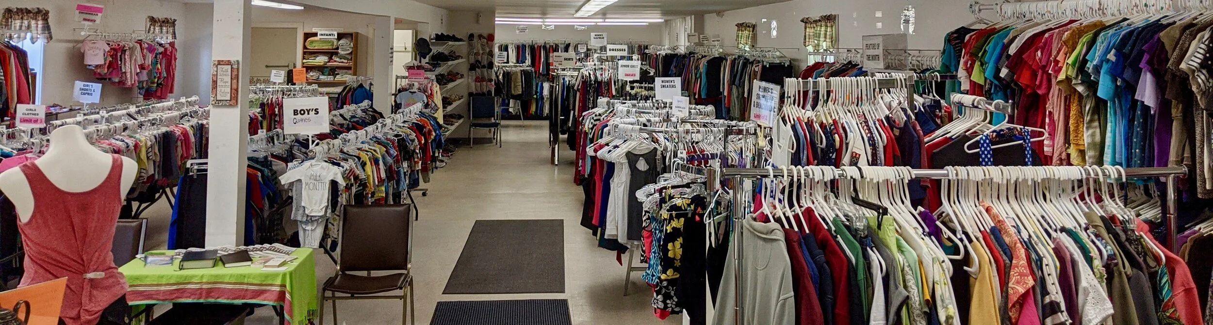 “It's a major community outreach, which is why we do our best to keep the price so low! So many people refer to the Share Shop as a thrift store, but that is not what it is. We accept donations of clothing, shoes, accessories, and linens and once we've sorted through the donated items, we fill the racks in the shop, and instead of charging per item, we charge $3 per a bag. We use what’s called a T-shirt bag. They are bigger than a Walmart bag, but smaller than a standard 13 gallon trash bag. So, it fits quite a bit of stuff. We have people that come from all over: Ticonderoga, Hague, North Hudson, Pottersville, Chesterton, Warrensburg... And I'm sure from many other places as well. Please help us spread the word! Looking forward to seeing you all! We have missed you!”