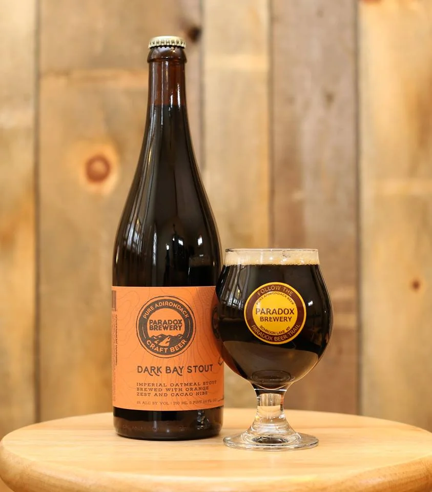 Dark Bay Stout is an imperial oatmeal stout brewed with cacao nibs and fresh orange zest in the boil and added after fermentation.