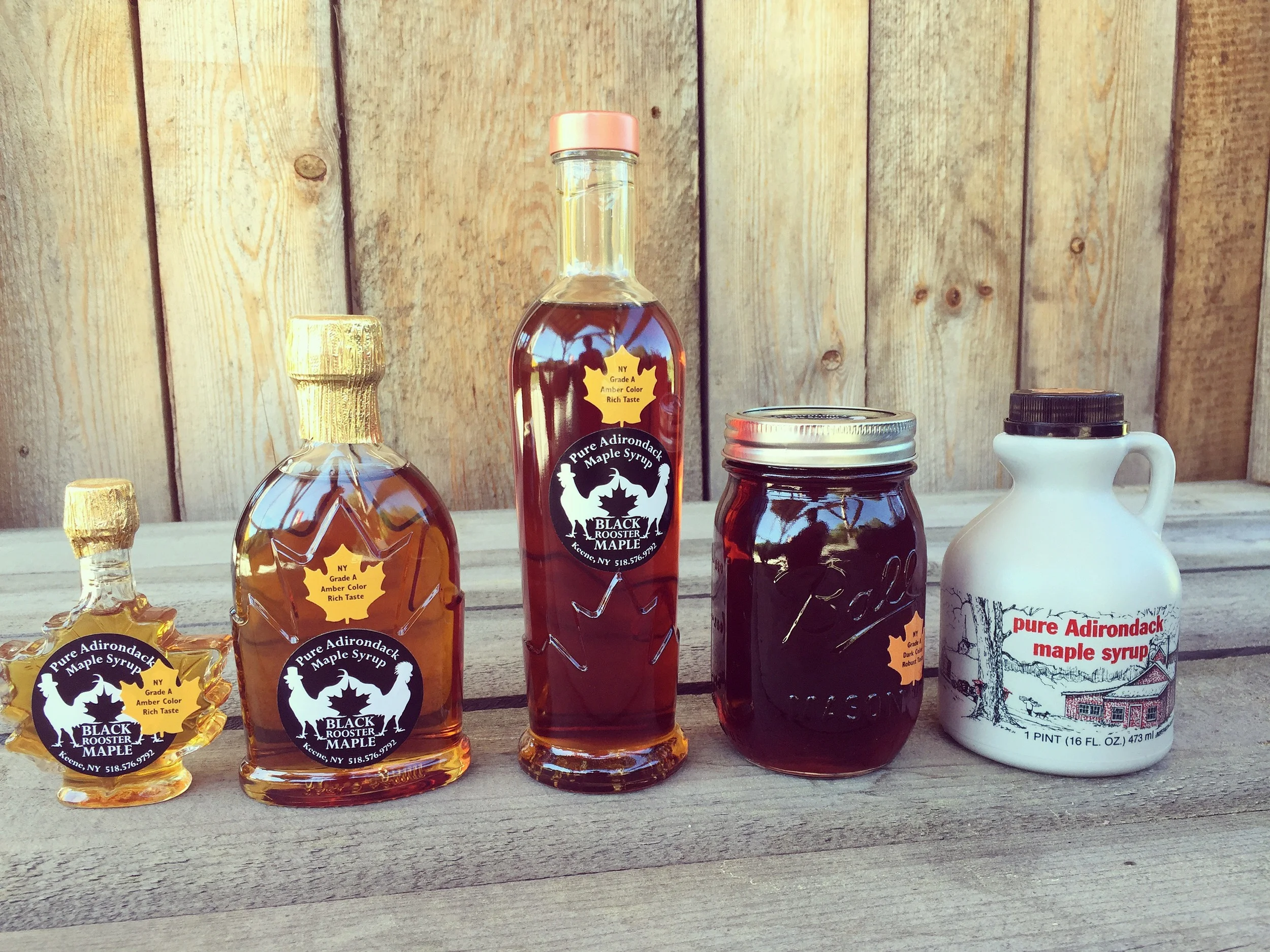 Thus came the name Black Rooster Maple. We now have 1,000 taps all on tubing and are continuing to grow our business every year. We have our store right along 9N in Keene. We produce maple syrup, maple candy and maple cream”.