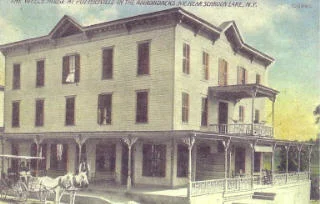 The Wells House has experienced several incarnations since its doors were first opened in 1885: from featuring lavish accommodations and comestibles for travelers from New York City who over nighted there after a long train and horse and carriage ride in the heyday of Schroon inthe early 1900s, to literally being a biker bar -- where a Harley was parked on the bar – The Wells House has apparently seen it all.
