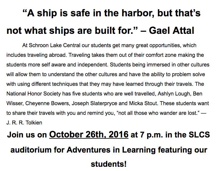 Great Adventures With Schroon Students