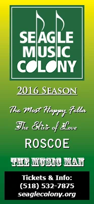 In case you can’t make it to any of SMC’s summer performances, make plans for Seagle Music Colony’s fifth annual fall season which this year includes the musical revue called Great Songs & Great Singers, which will be a part of the Schroon Lake Labor Day Weekend celebrations on Sunday, September 4 at 7:30 pm, and will also be on tour across the North Country throughout September. For more information, to buy tickets or to make a donation atwww.seaglecolony.org.